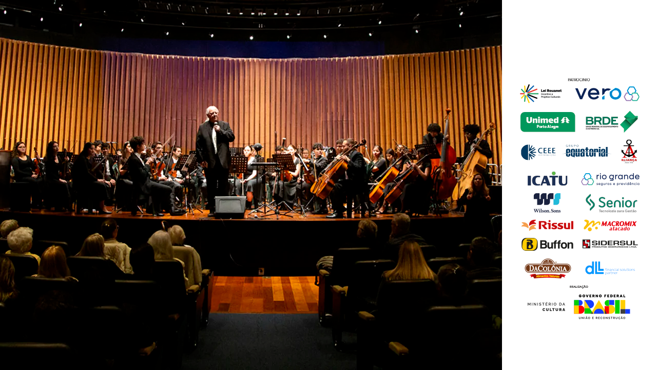 | 18 dez 19:00 horas | Concerto OJRS - Dezembro 2025Fundação Pão dos Pobres | Porto Alegre - RS | SAIBA MAIS |